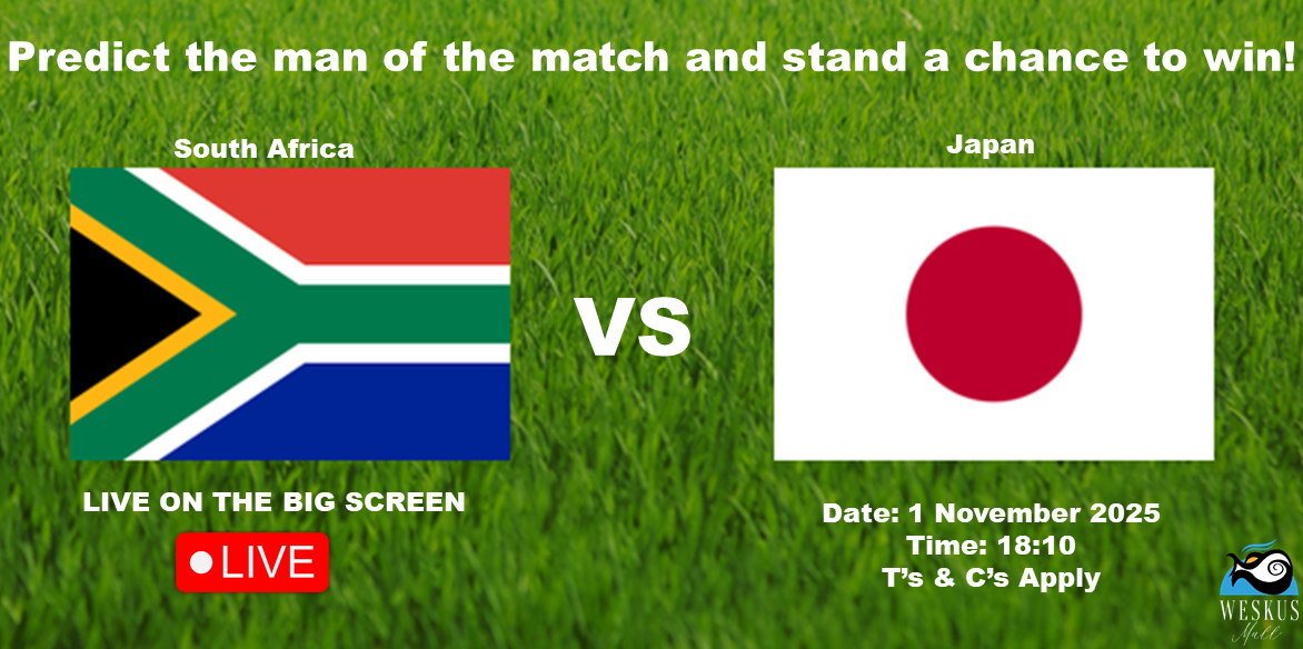 Predict the Man of the Match for Saturday’s game against Japan and stand a chance to win a Volpes, The Home Of Linen voucher worth R500! ️