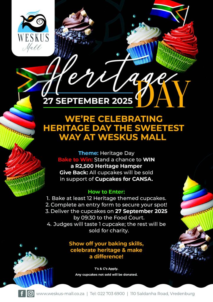 We're celebrating heritage day the sweetest way at weskus mall Theme: Heritage Day Bake to Win: Stand a chance to WIN a R2,500 Heritage Hamper Give Back: All cupcakes will …