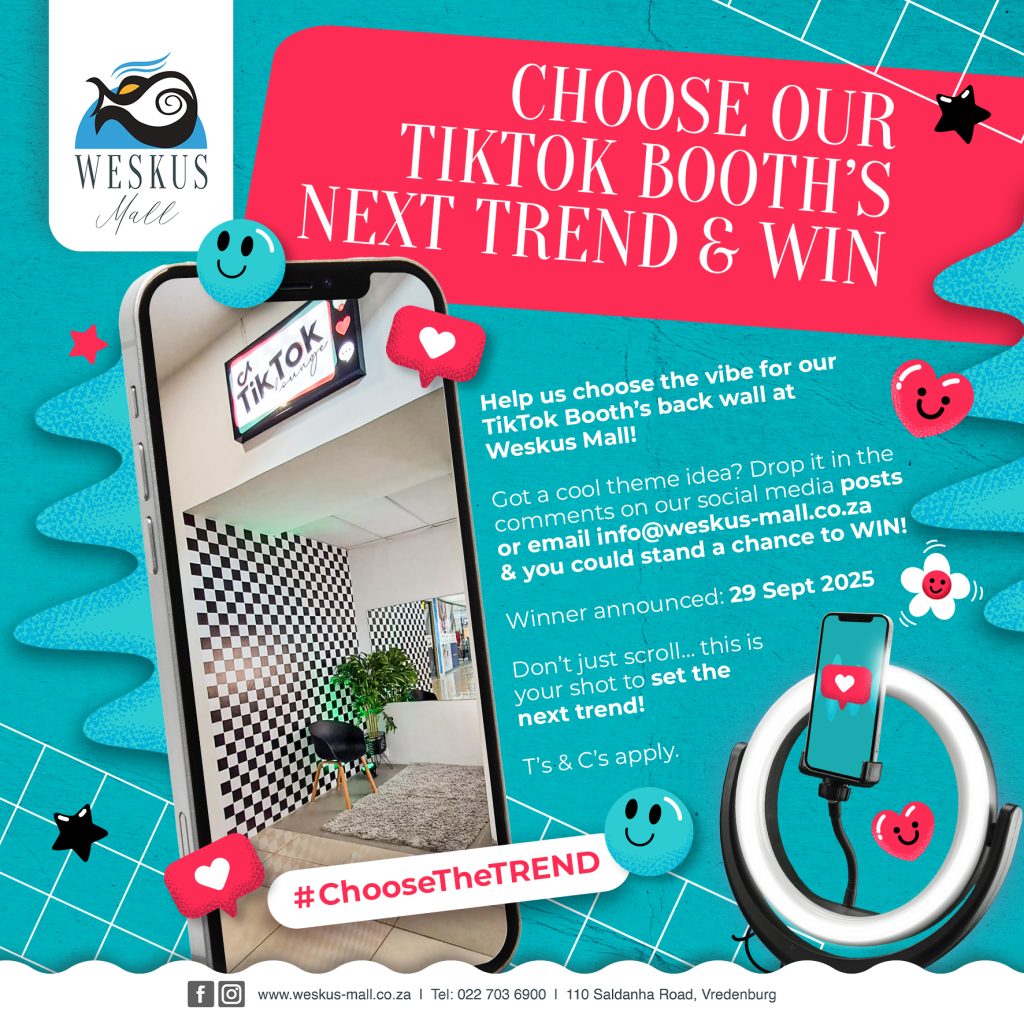 Help us choose the vibe for our TikTok Booth's back wall at Weskus Mall! Got a cool theme idea? Drop it in the comments on our social media posts or …