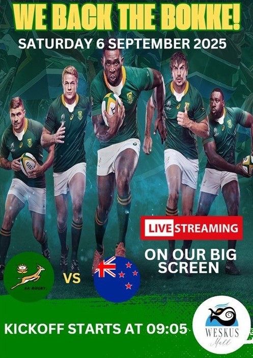 Will the Springboks be undefeated this weekend or will the All Blacks come back stronger? South Africa vs New Zealand |Kick-off starts at 09:05am |Saturday, 6 September 2025 Weskus Mall …
