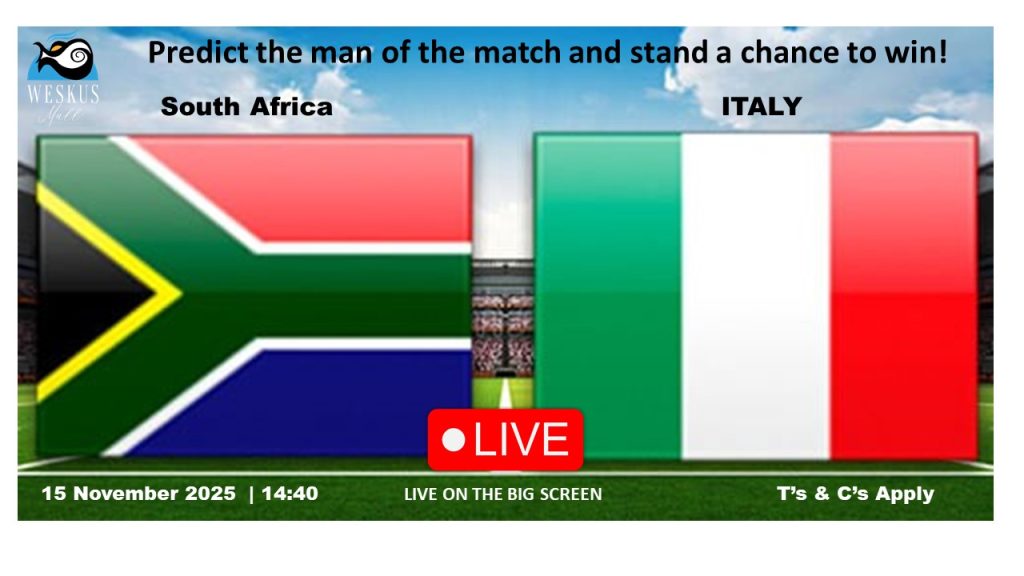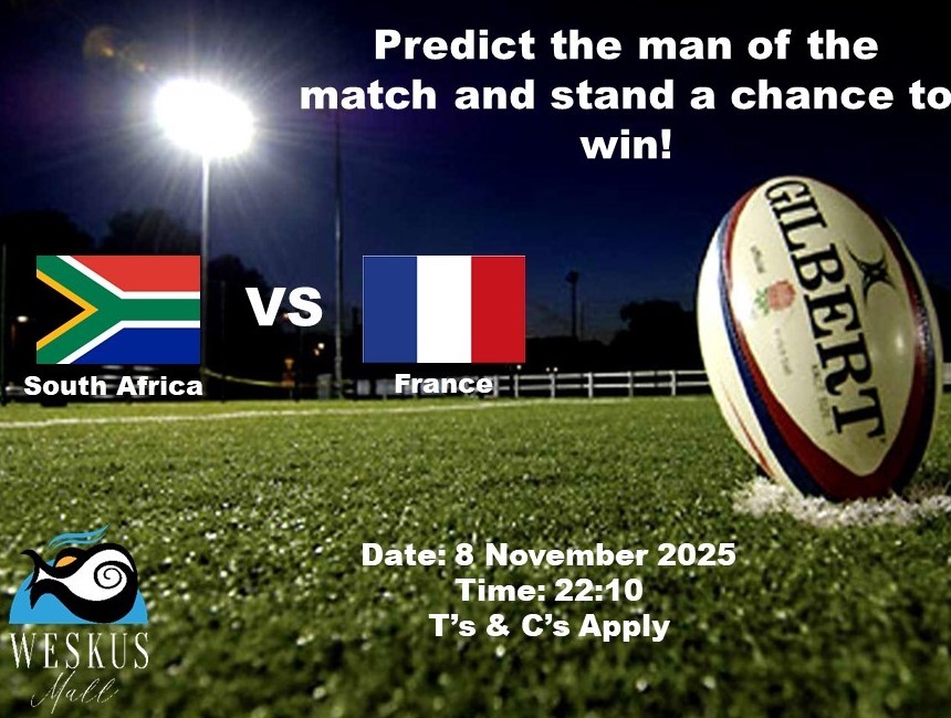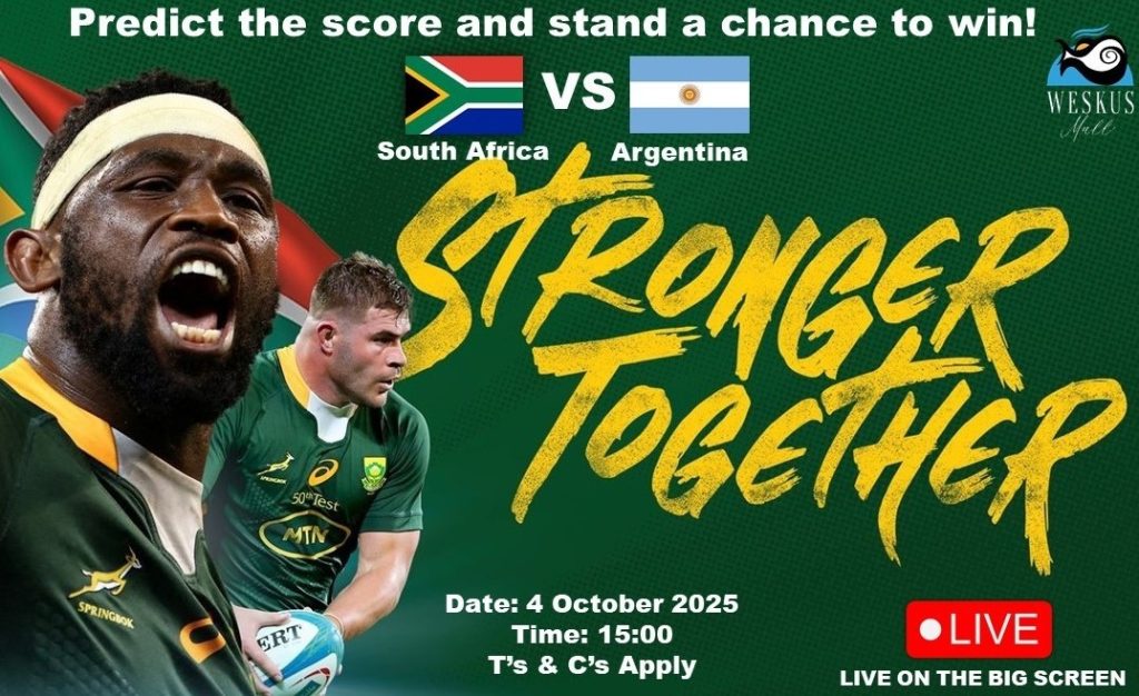 Predict the score and stand a chance to win with Weskus Mall South Africa VS Argentina Date: 4 October 2025 Time: 15:00 Who will be victorious this Saturday? Weskus Mall …