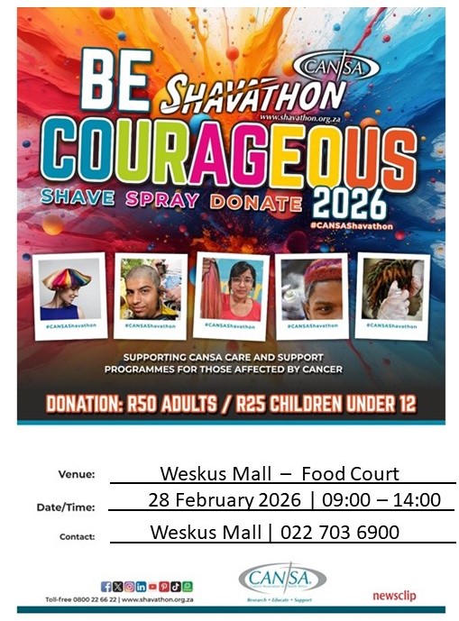 Let’s come together with compassion and courage to support CANSA at the CANSA Shavathon 2026. 💛 Join us on Saturday, 28 February 2026 on the Upper Level, in the Food …