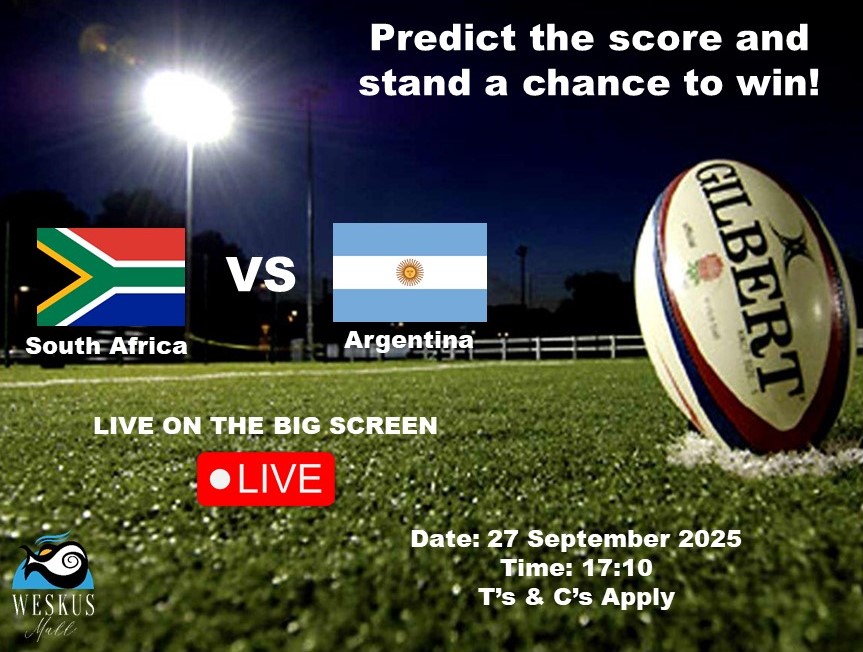 Predict the score and stand a chance to win with Weskus Mall South Africa VS Argentina Date: 27 September 2025 Time: 17:10 Who will be victorious this Saturday? Weskus Mall …
